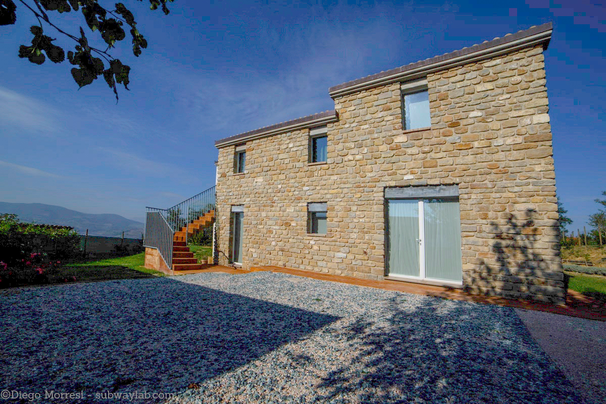 Il progetto nasce dal recupero di un rudere in pietra di inizio '900, dove linee pulite, materiali naturali ed uno stile essenziale creano un ambiente accogliente, perfettamente integrato nella natura.